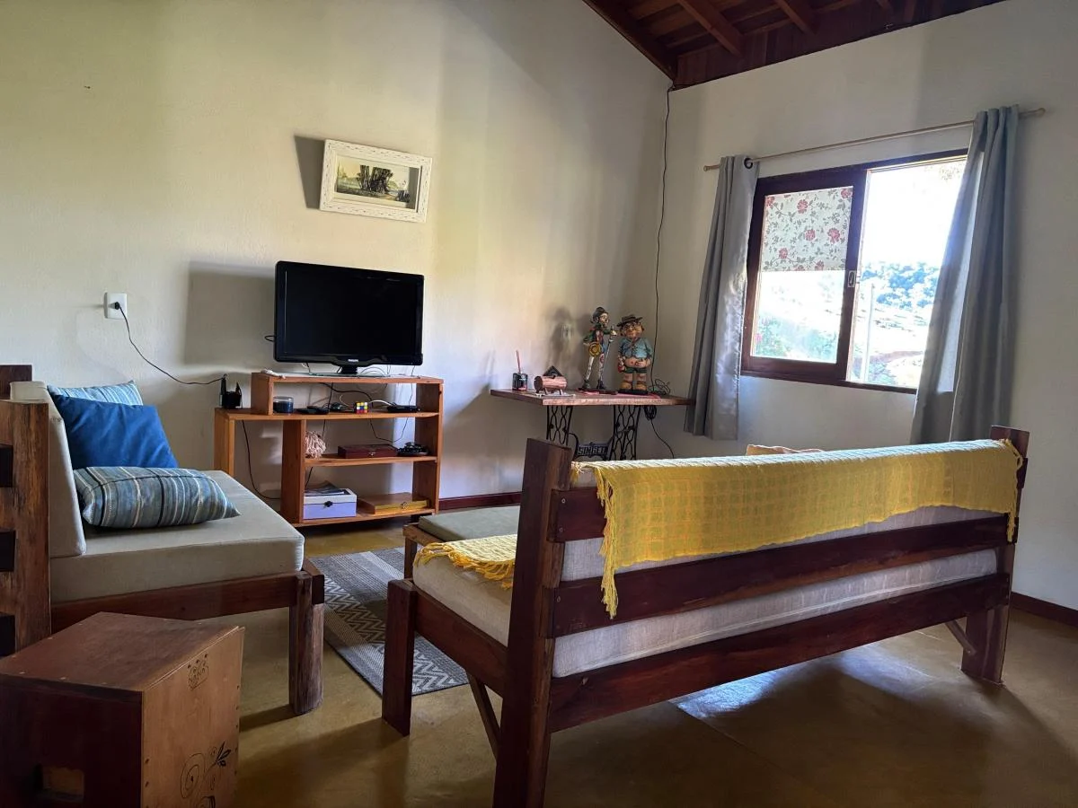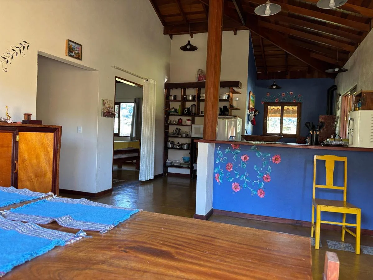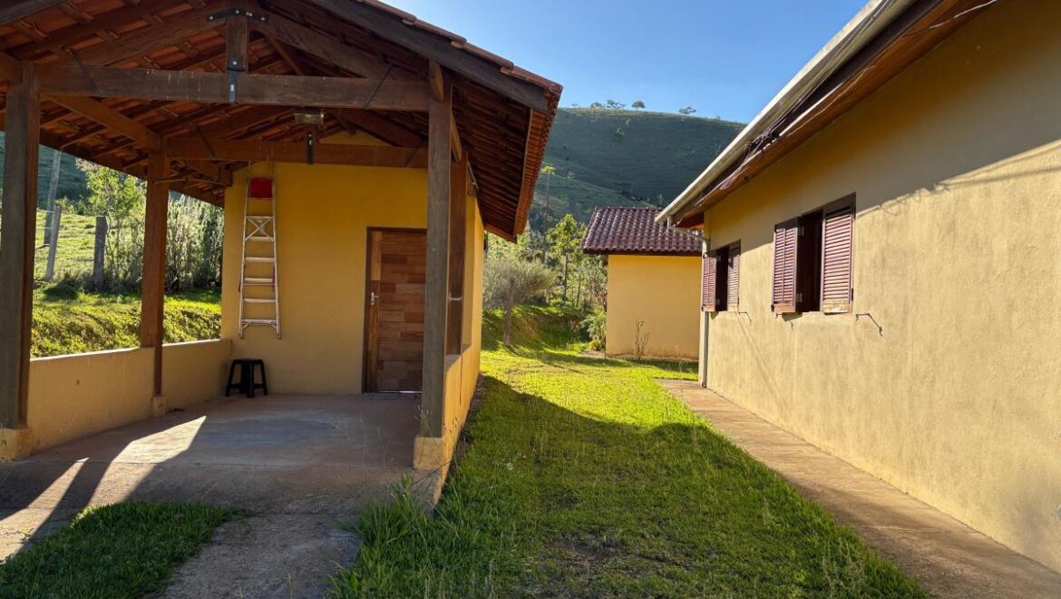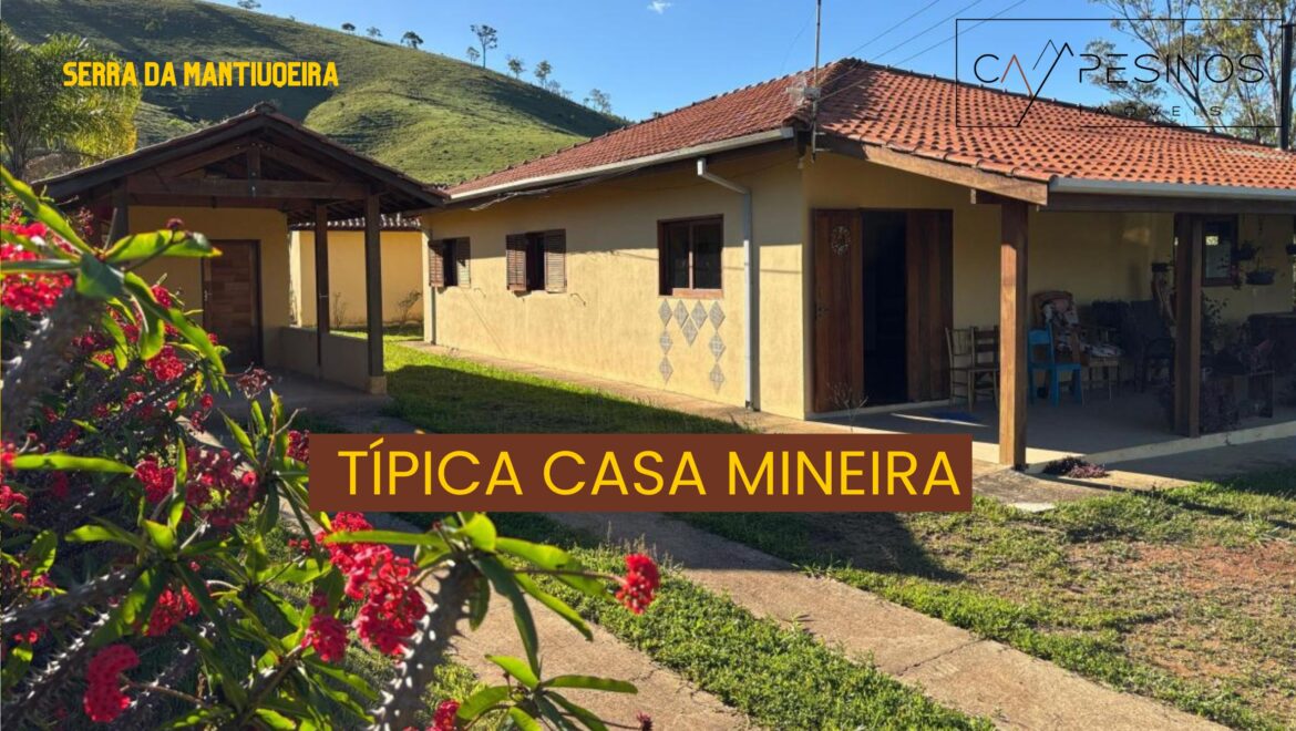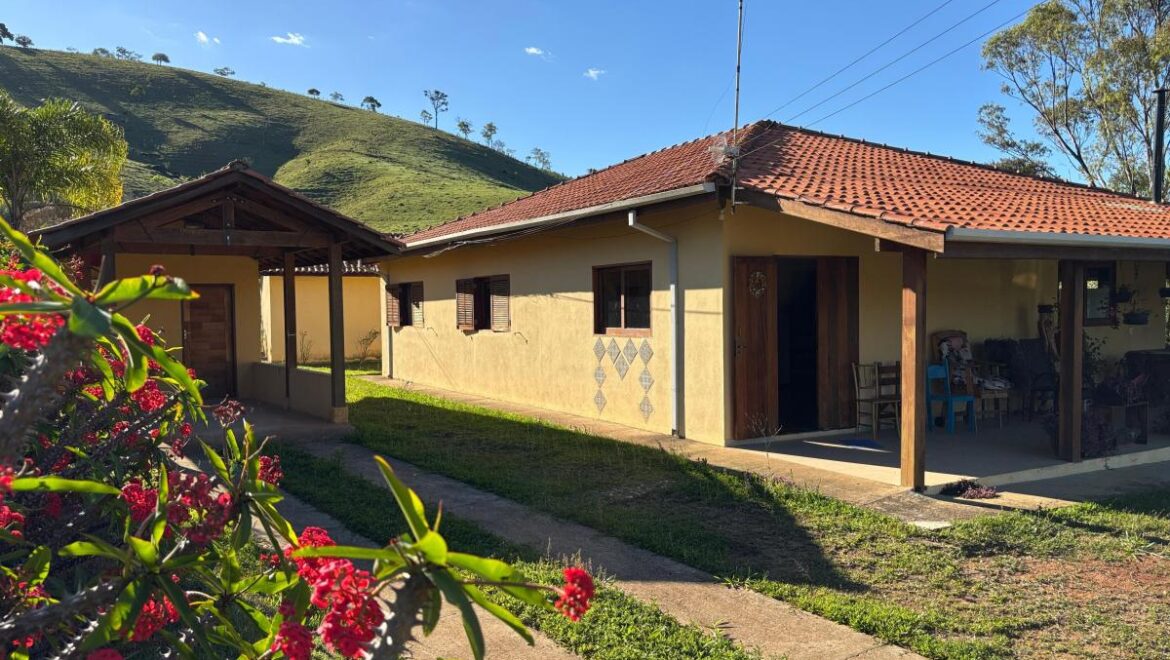 A propriedade possui uma linda casa em estilo mineiro, com aproximadamente 220 m², composta por cozinha com fogão a lenha, sala de jantar, sala de TV, três quartos (sendo uma suíte) e ampla varanda em “L” com vista para as montanhas.