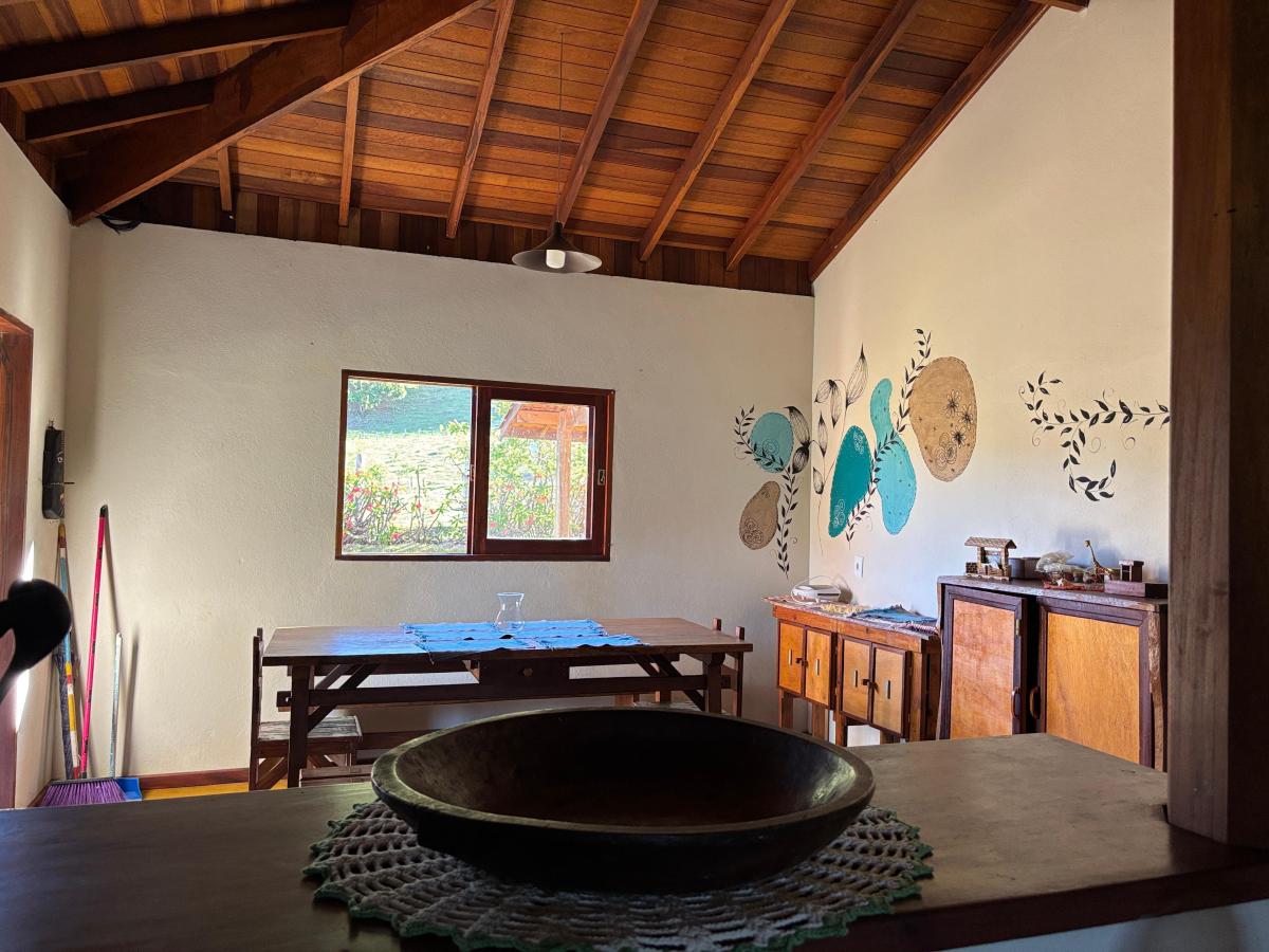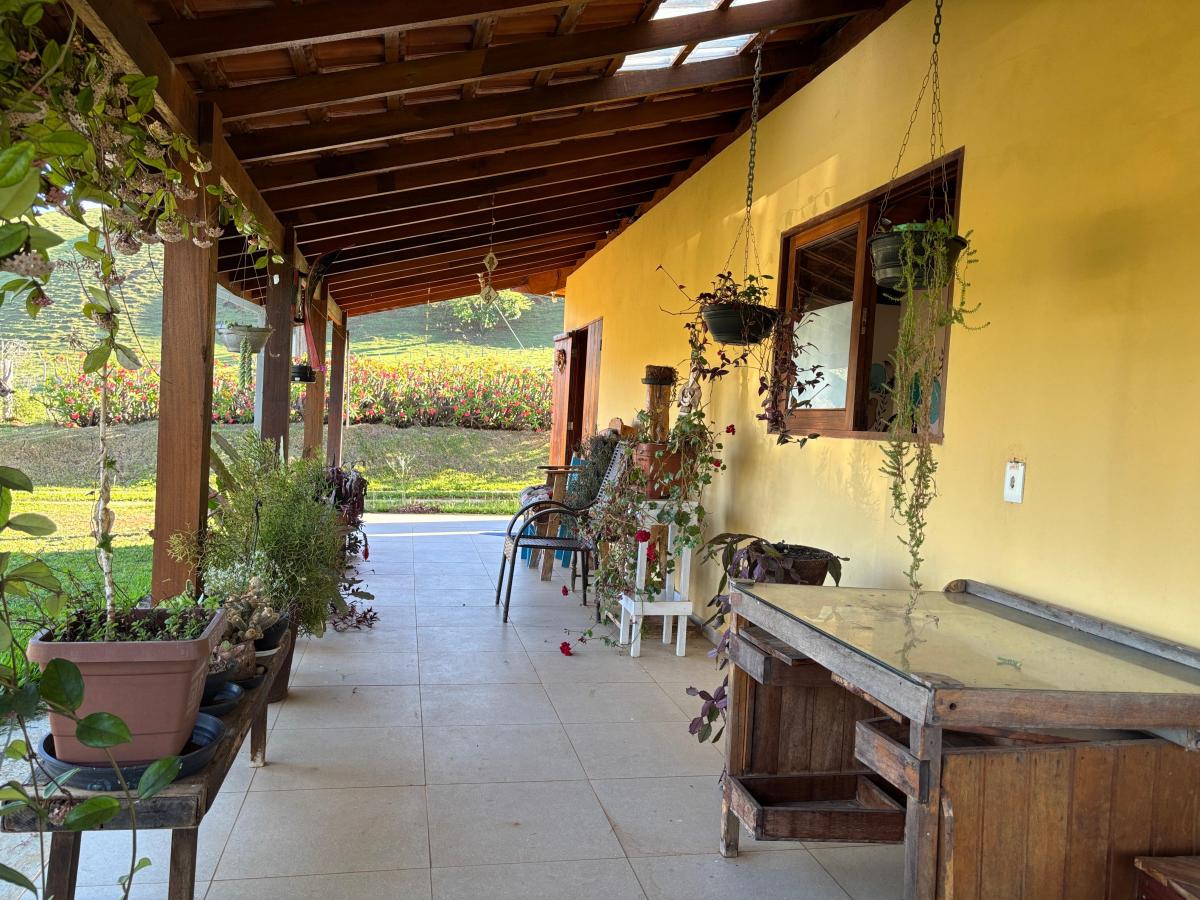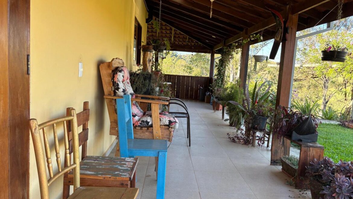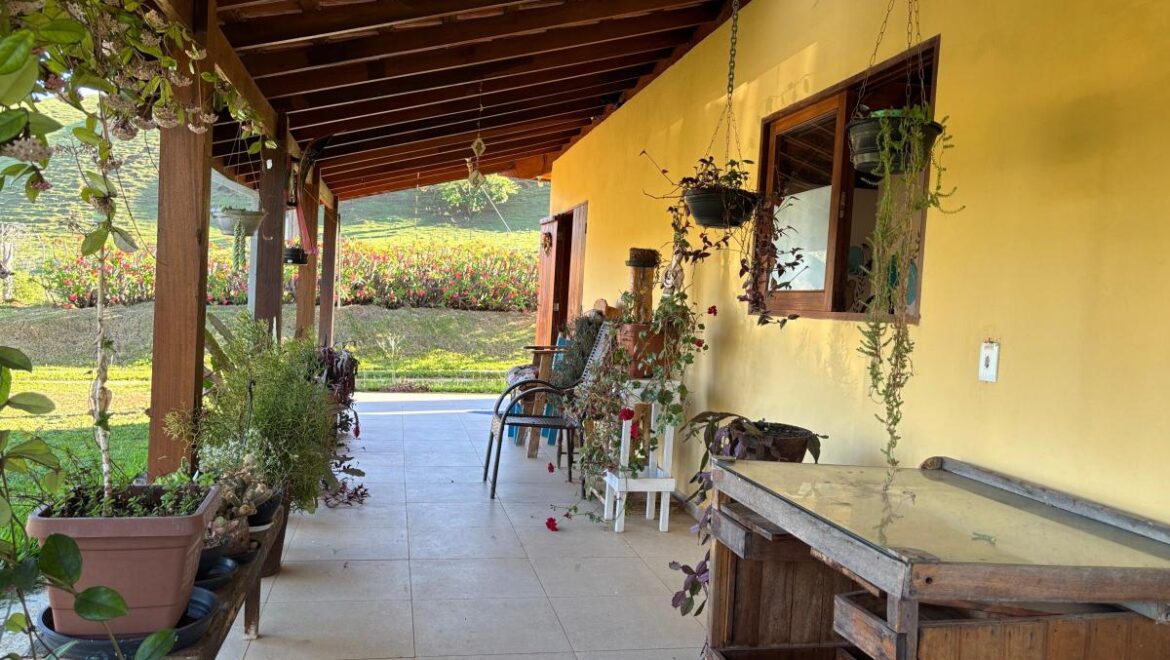 A propriedade possui uma linda casa em estilo mineiro, com aproximadamente 220 m², composta por cozinha com fogão a lenha, sala de jantar, sala de TV, três quartos (sendo uma suíte) e ampla varanda em “L” com vista para as montanhas.