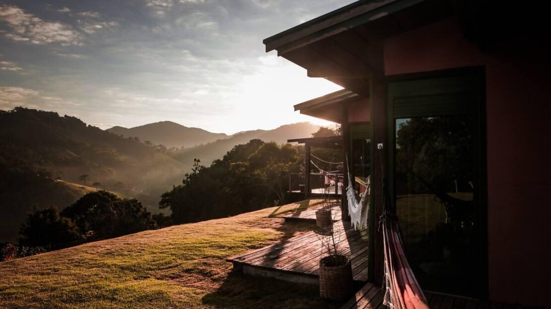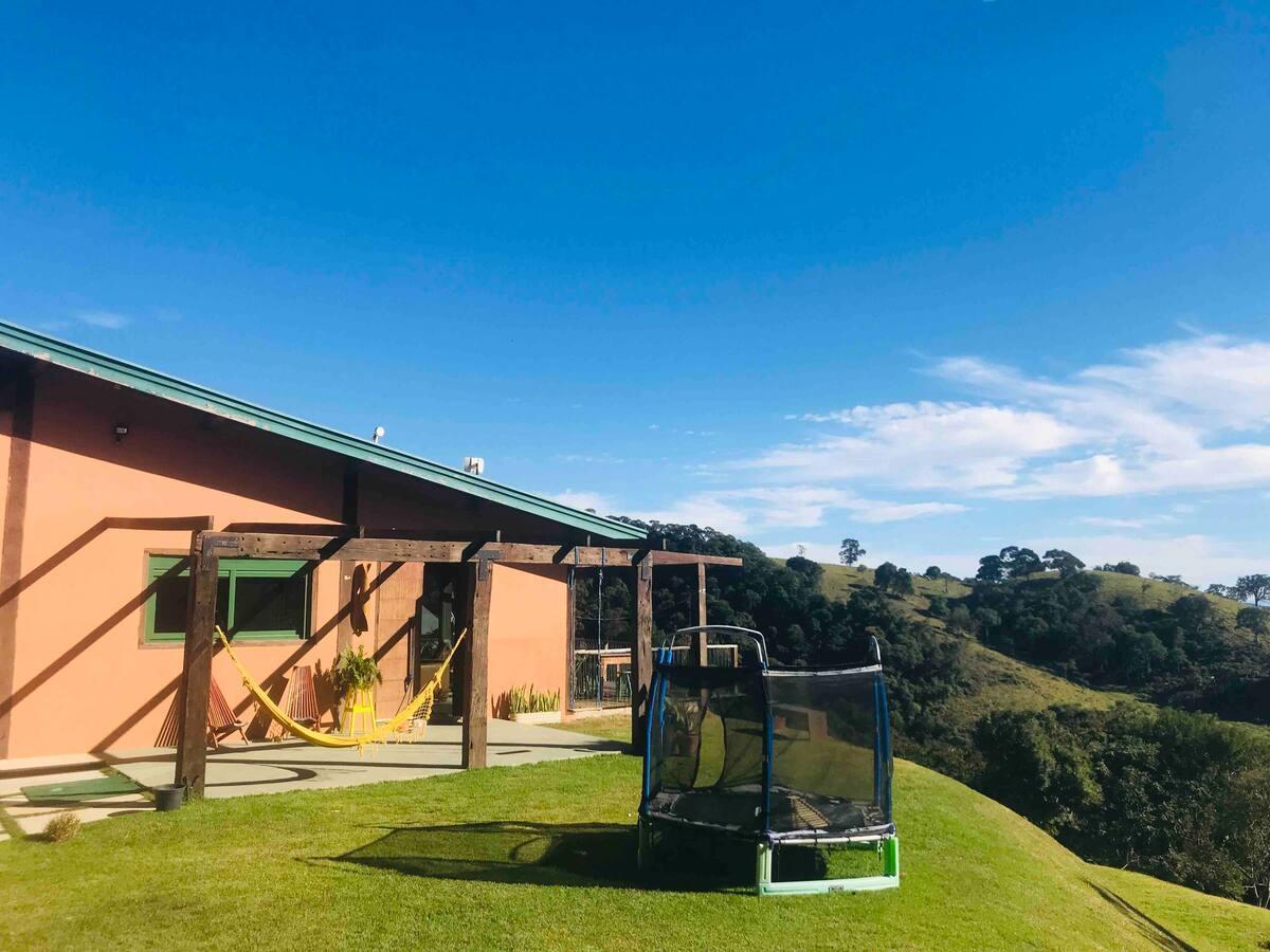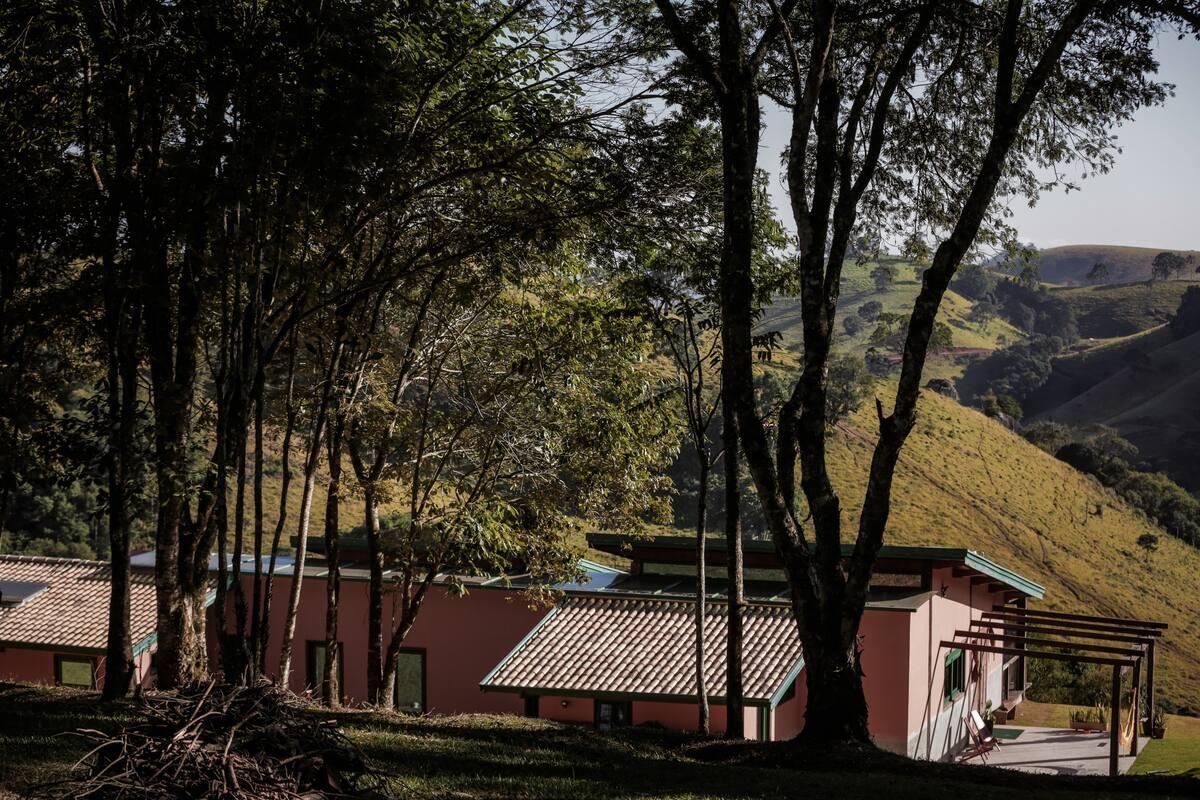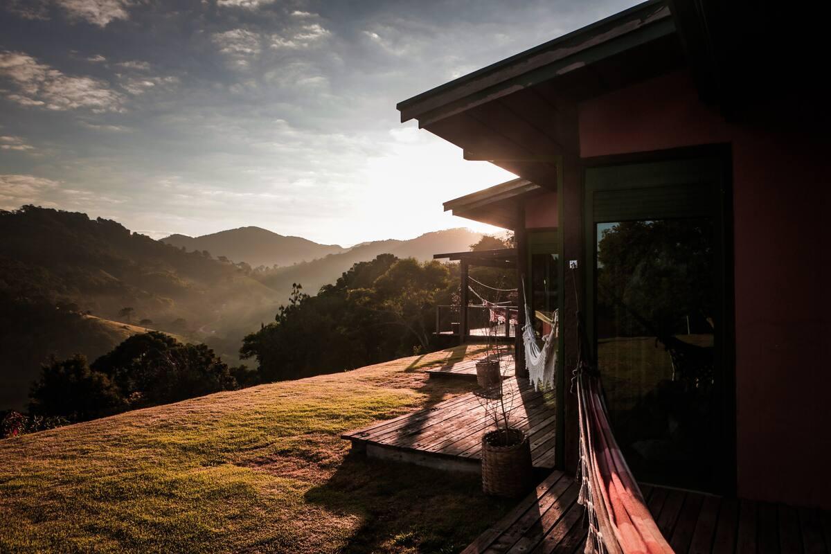 SÍTIO COM CASA SUSTENTÁVEL E UM CHALÉ COM VISTA PARA FLORESTA ONDE SE OUVE O SOM DO RIO.