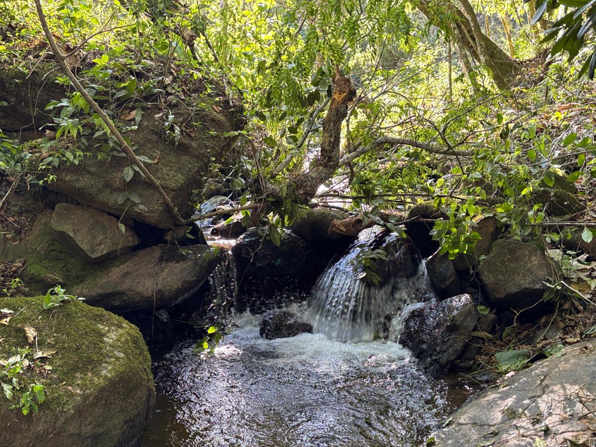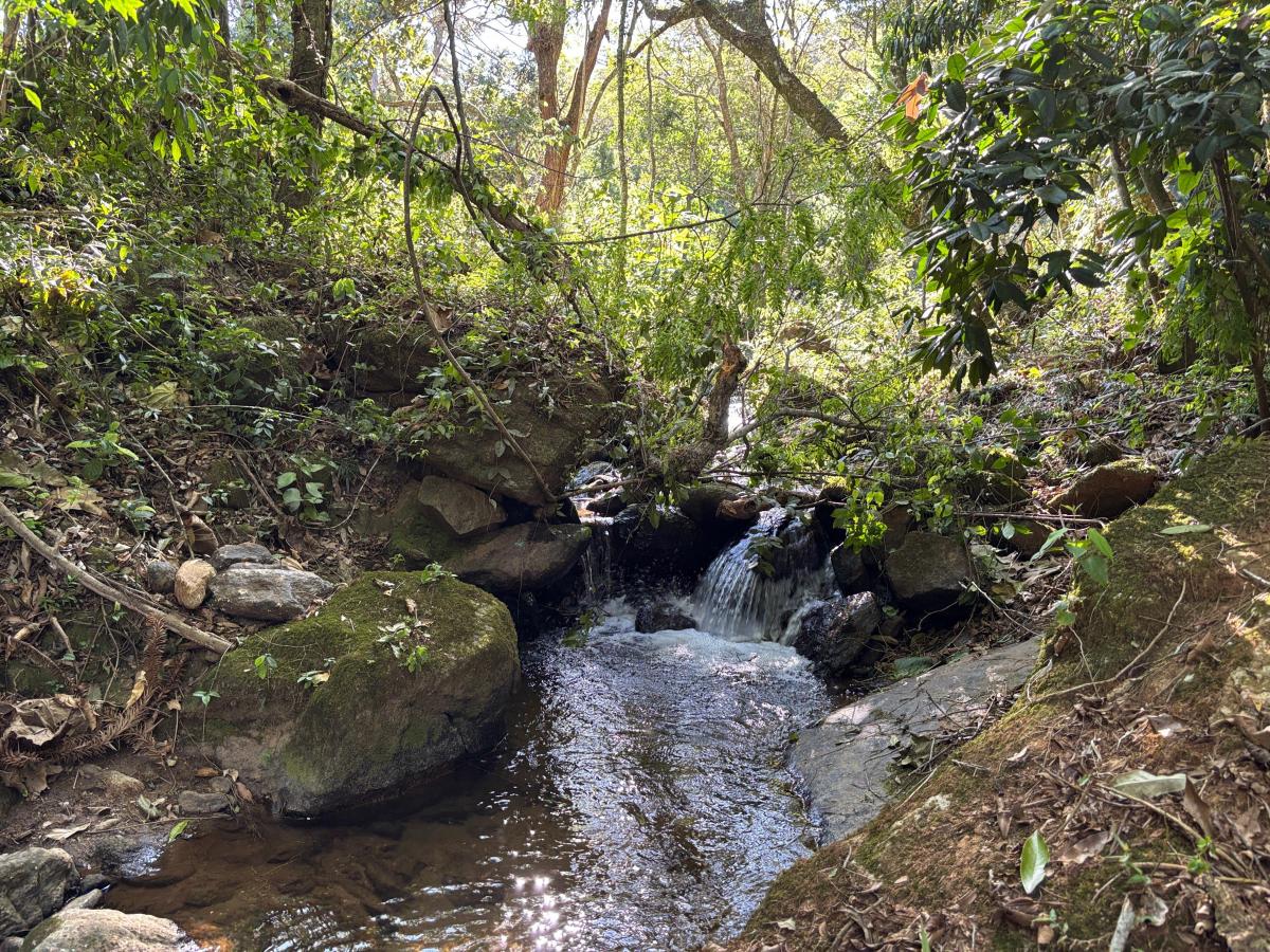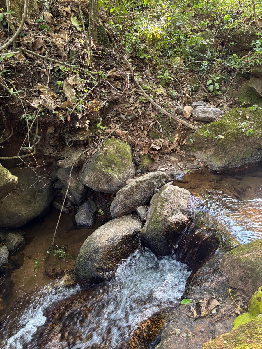 A água de nascente se encontra no meio do terreno, podendo ser utilizada para muitos fins, inclusive para uma piscina natural com água corrente de mina. A vazão é fantástica!